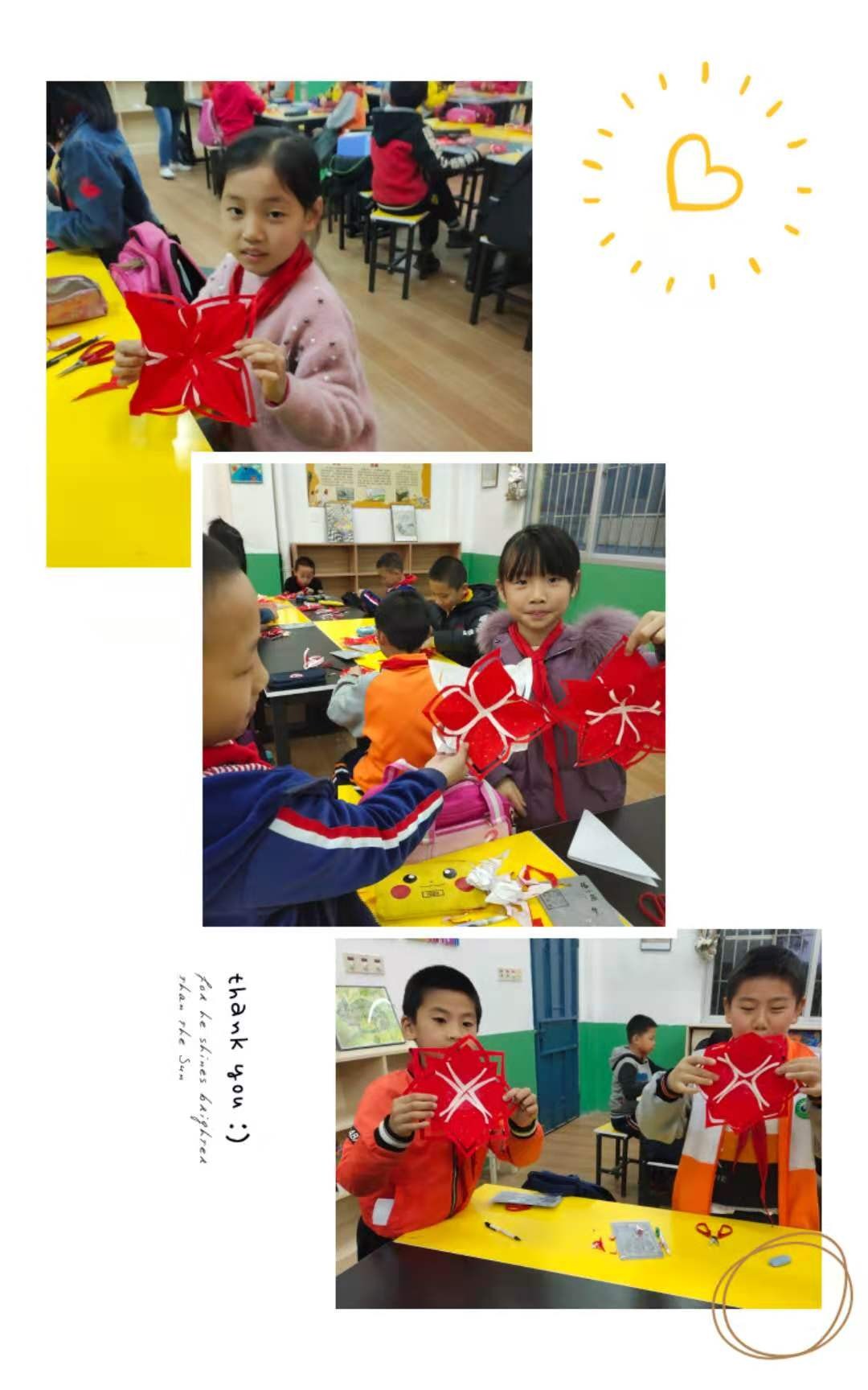 同学们在完成作品后,脸上洋溢着成功的喜悦,大胆展示自己的“杰作”。