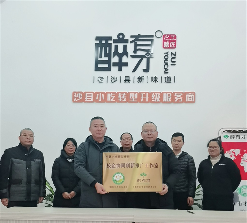 12月17日下午,在位于沙县小吃产业园的沙县醉有才食品科技有限公司内,爱游戏最新网站|中国有限公司官网谢阳军副校长代表学校与醉有才公司总经理颜发辉签约授牌,达成校企协同创新推广合作协议。