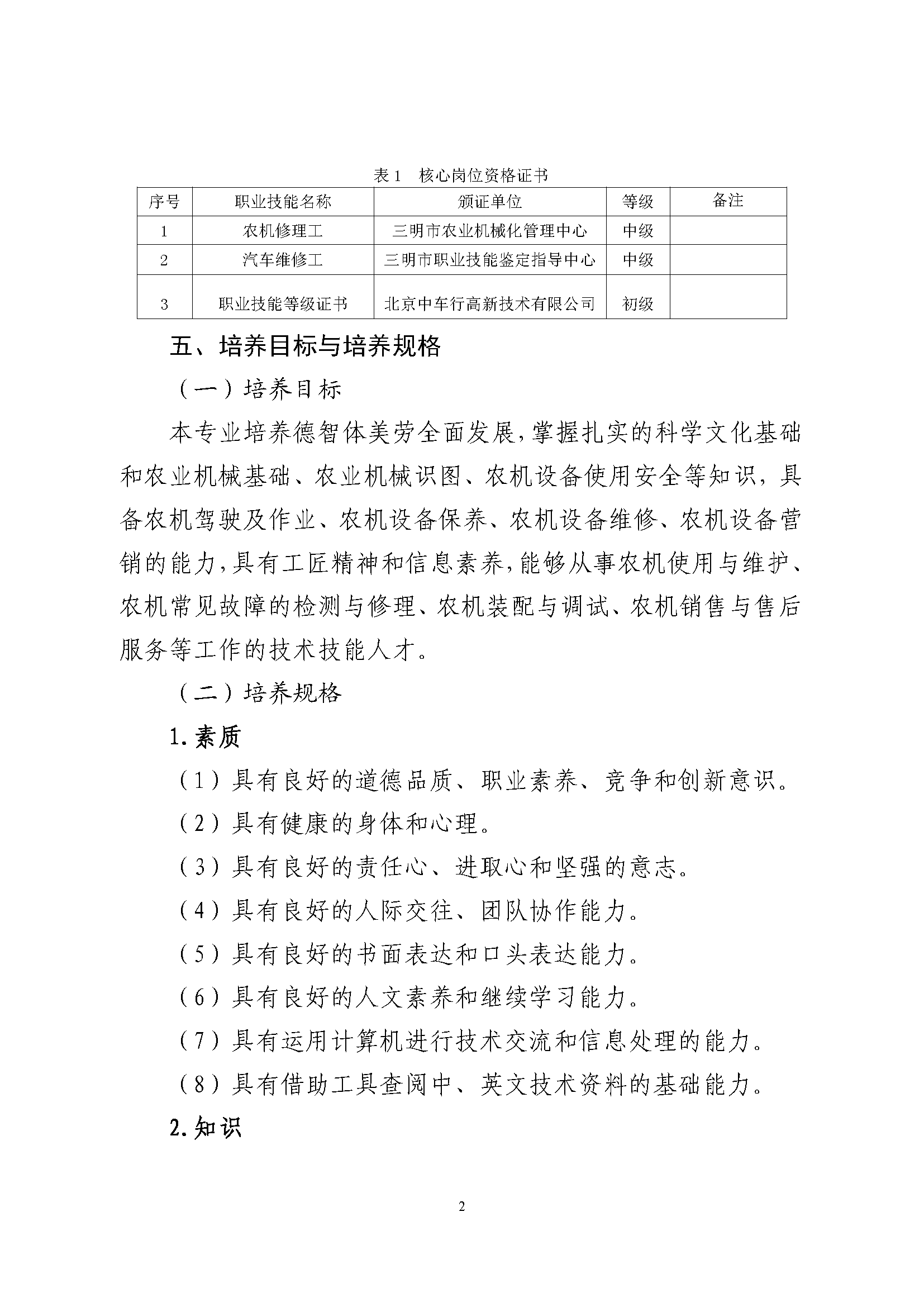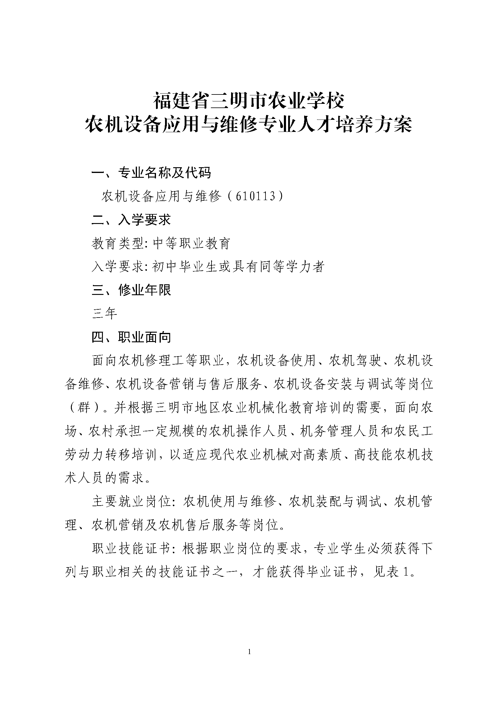 三明市农业学校农业设备应用与维修专业人才培养方案(2023)